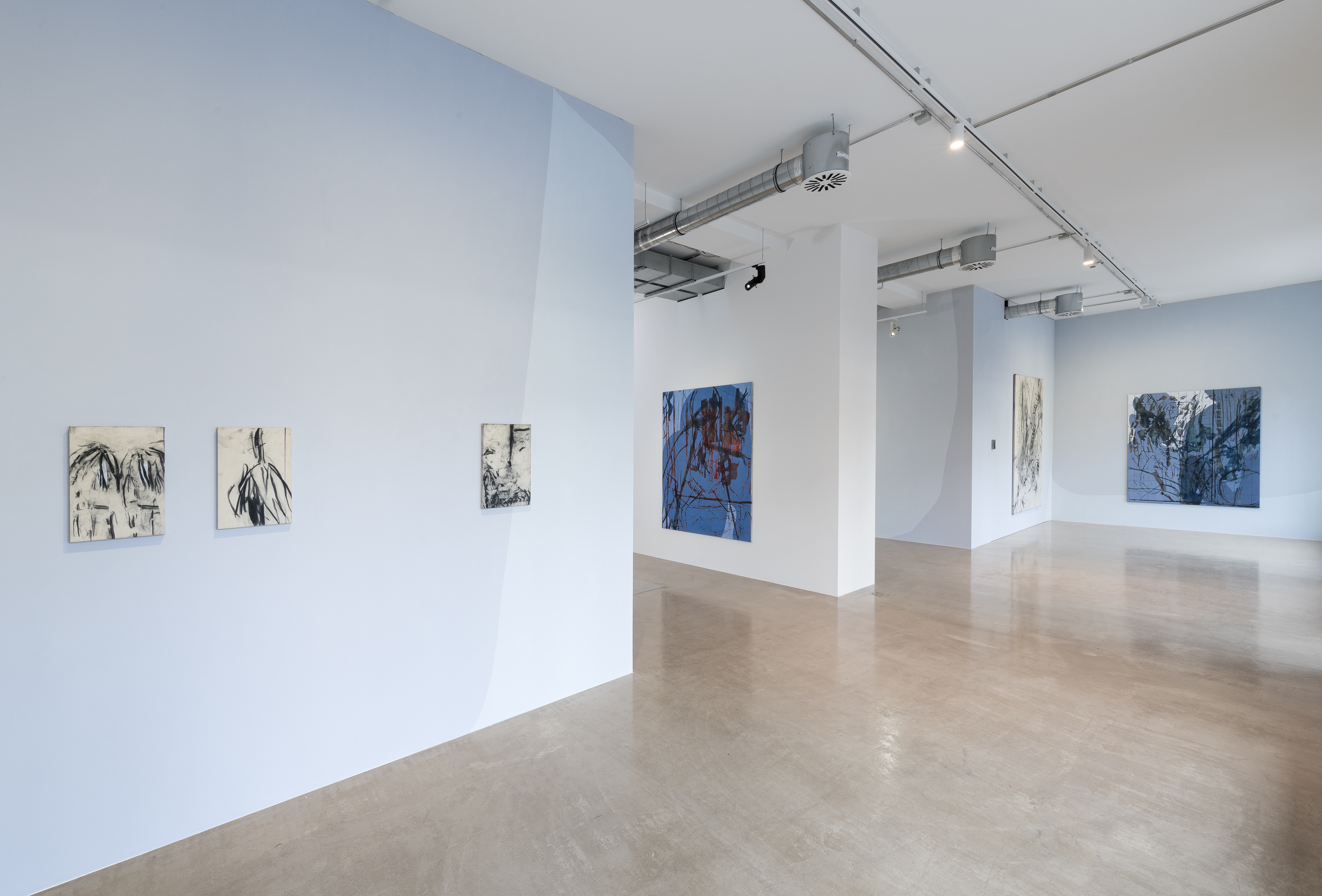 Der Ausstellungstitel EVEN DEMONS HAVE DEMONS ist auf sprachlicher Ebene tautologisch und redundant. Semantisch verweist er auf eine Veränderung, ja sogar eine Verstärkung des Bekannten durch diese Redundanz. Heinrich wählte diesen Titel, weil er in seiner künstlerischen Arbeit eine Form der Erweiterung erkennt, die überraschend ist und dennoch selbstverständlich erscheint. Seine Kohlezeichnungen mögen zunächst übermäßig wirken und den Eindruck einer einzigen, starken Geste erwecken. Tatsächlich entstehen sie jedoch durch einen Prozess des ständigen Überdenkens, Reagierens und Entscheidens.