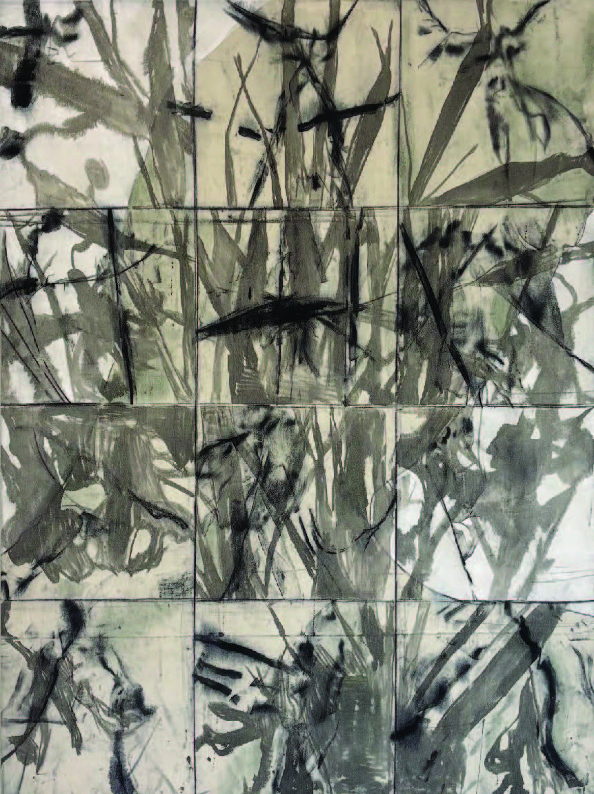 Hannes Heinrich draws inspiration from Paul Thek’s Portrait of Peter Hujar, fragmenting his own silhouette across a grid structure. The result is a series of shifting appearances that oscillate between visibility and withdrawal—expressing the tension between self-exposure and self-concealment.