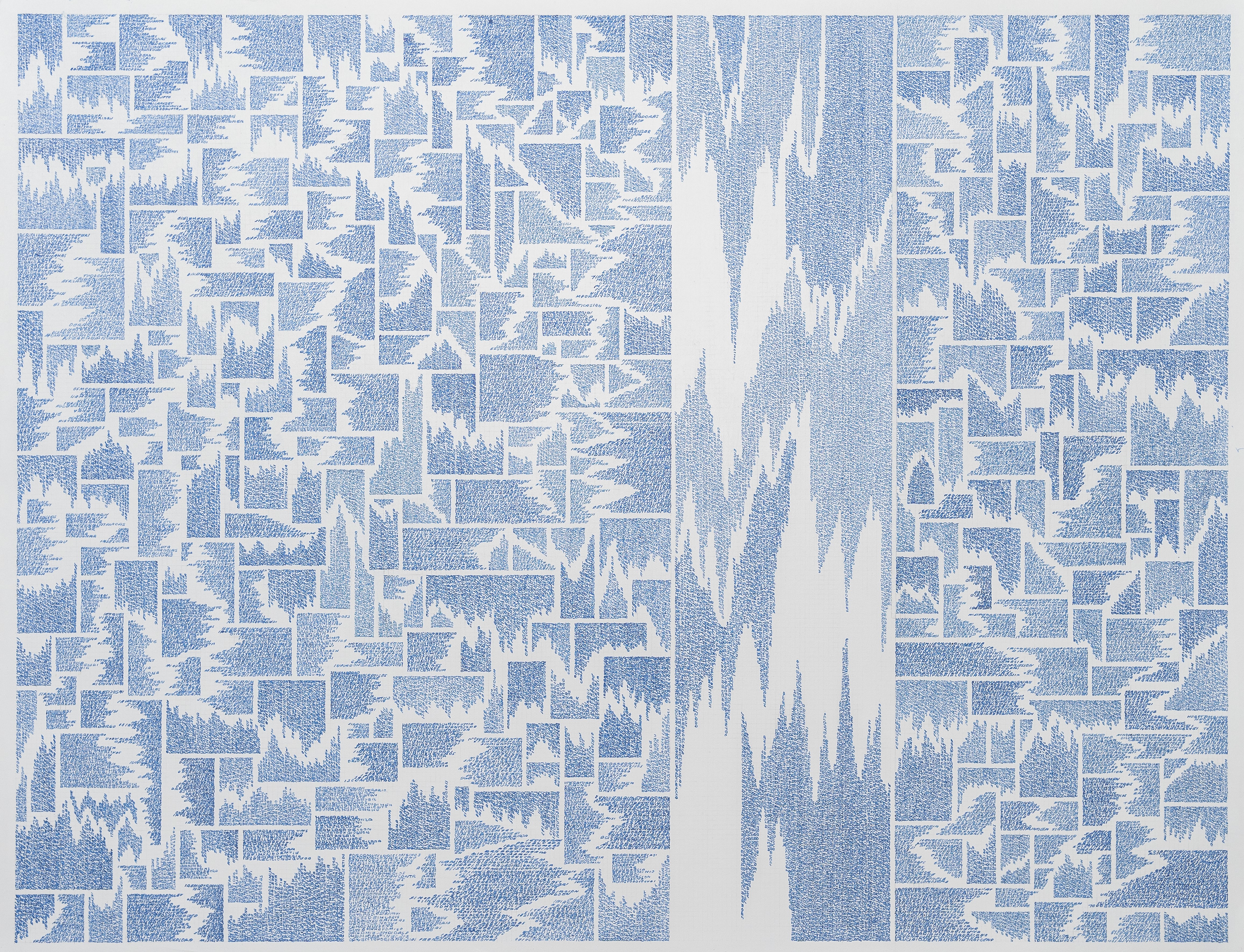 We show poetic works by Johanna Calle, typed with a typewriter. In her expanded drawing practice, which is combined with intensive material research, the Bogotá-based artist sheds light on important social and political issues such as social inequality, ecological concerns, or the loss of cultural identity.