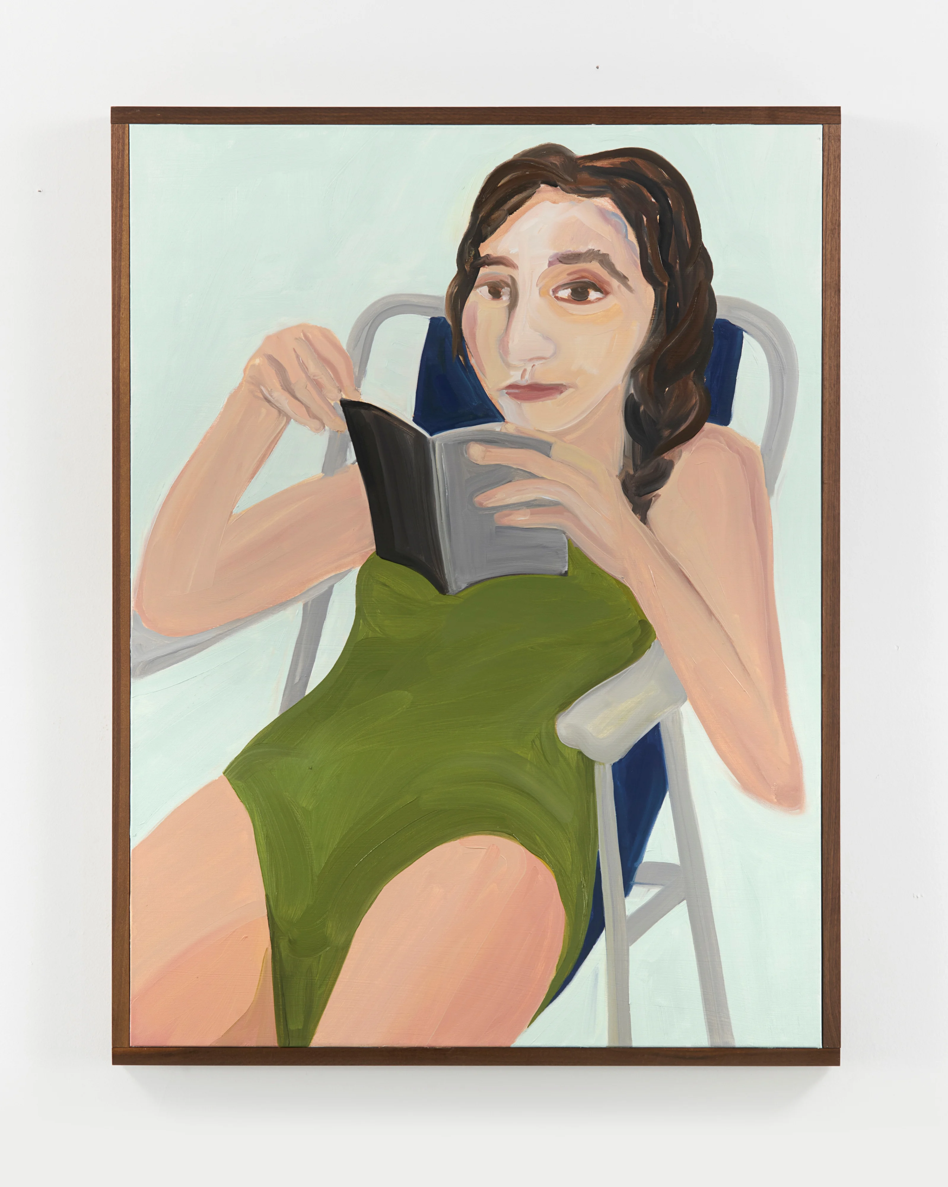 Phoebe reading grey book