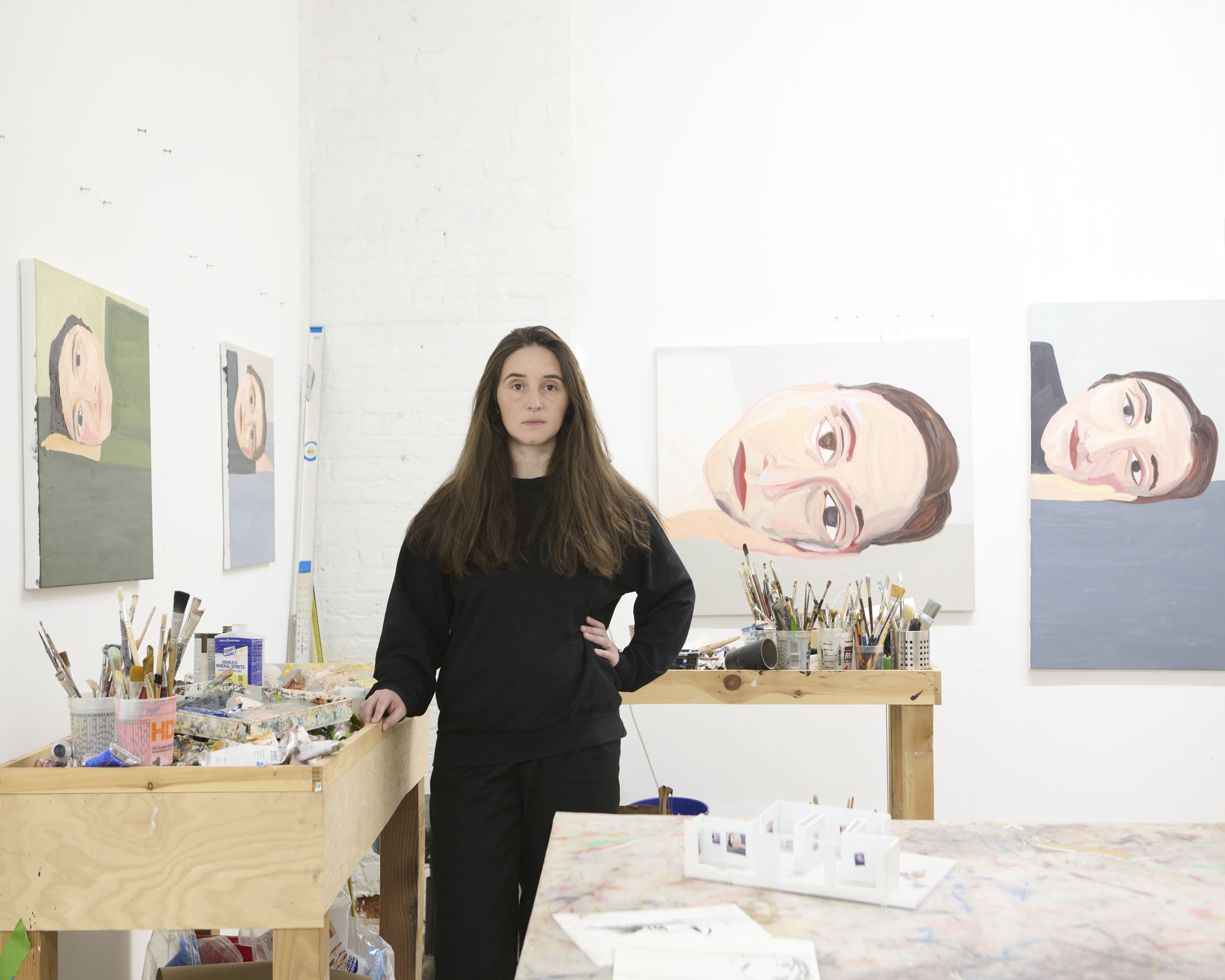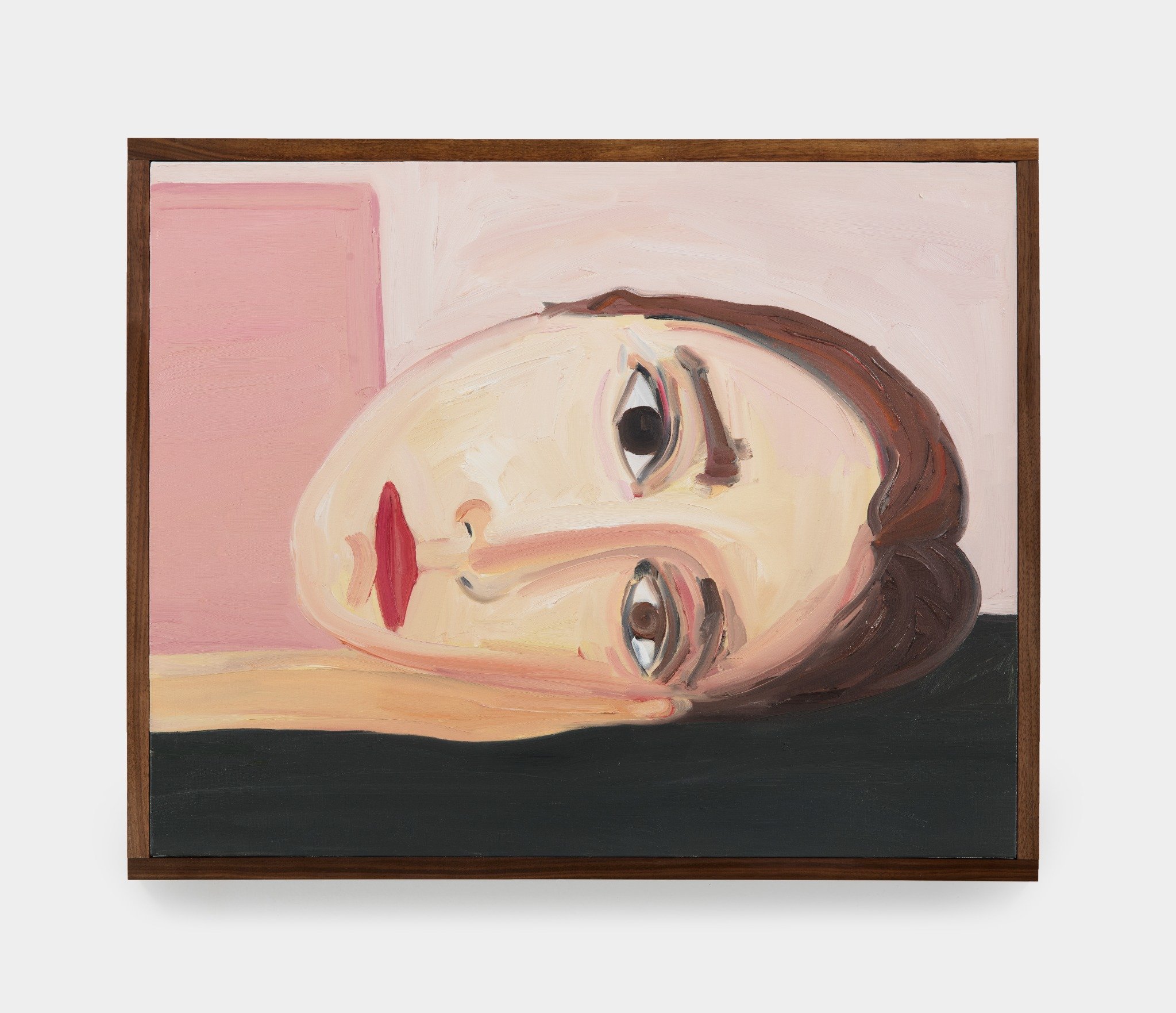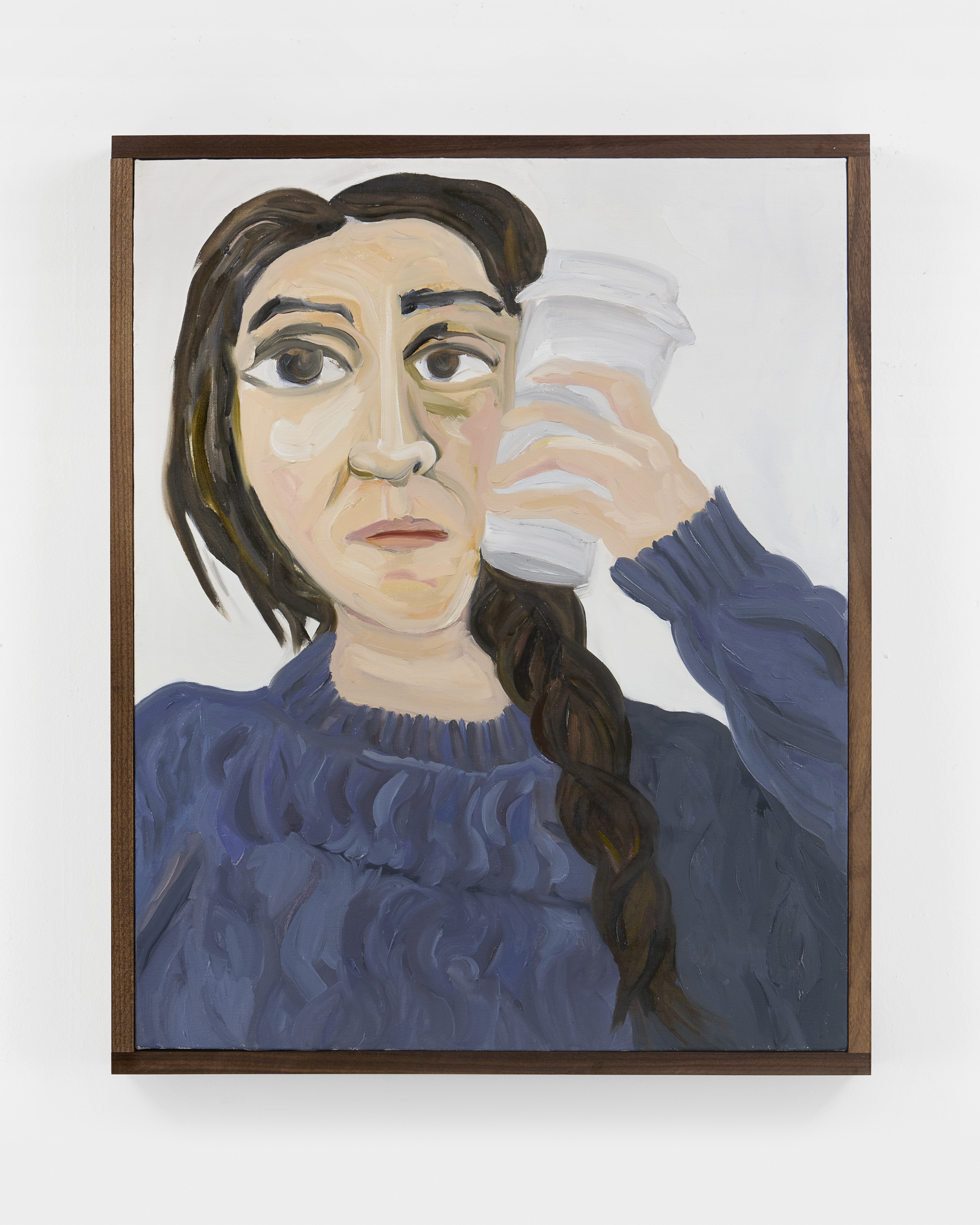 Phoebe Derlee uses bold, decisive brushstrokes to create paintings that are both intimate and emotionally distanced, often using herself as the subject. Her figures frequently appear isolated against vivid, monochromatic backgrounds, with her works ranging from small to large-scale canvases. Derlee consistently engages with the human form and the ways it can be reimagined or reconfigured.