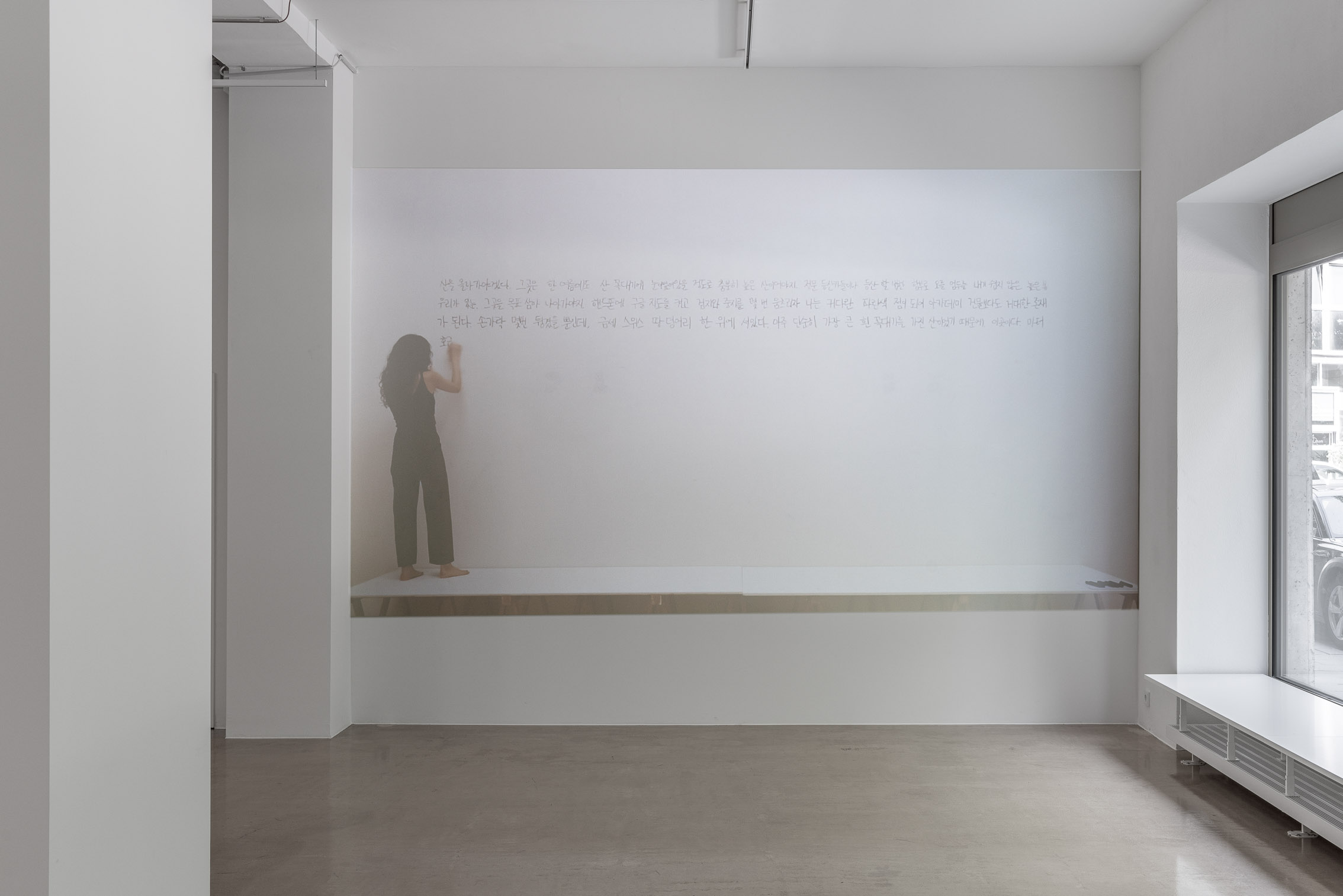 Die junge Koreanerin Jieun Park zeigt ihre Schreibperformance "Writing, Hiding, Disappearing and Staying", die sich mit Identität, Herkunft und sozialen Beziehungen auseinandersetzt, sowie neue Arbeiten über den Prozess des Schreibens und die conditio humana.
