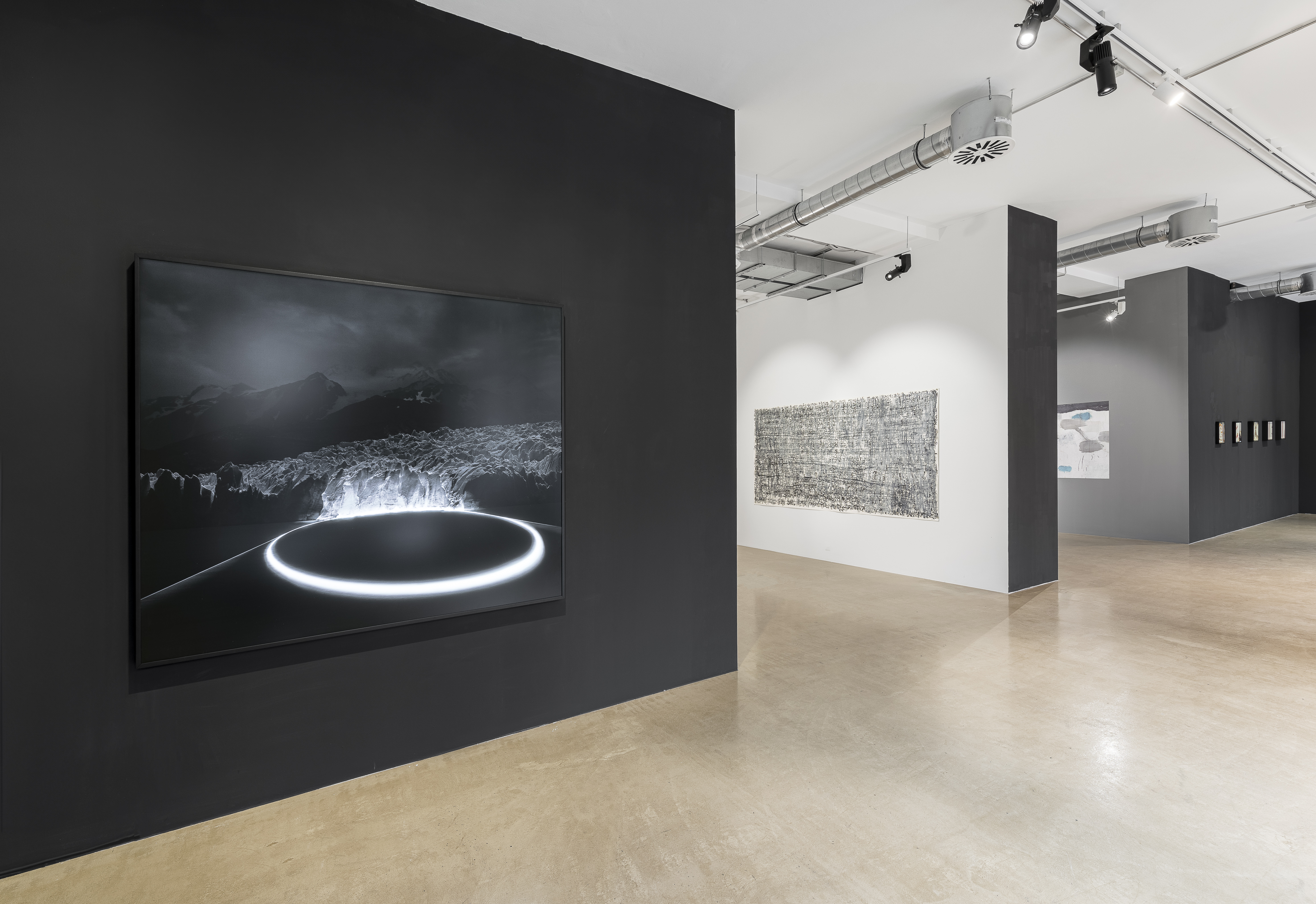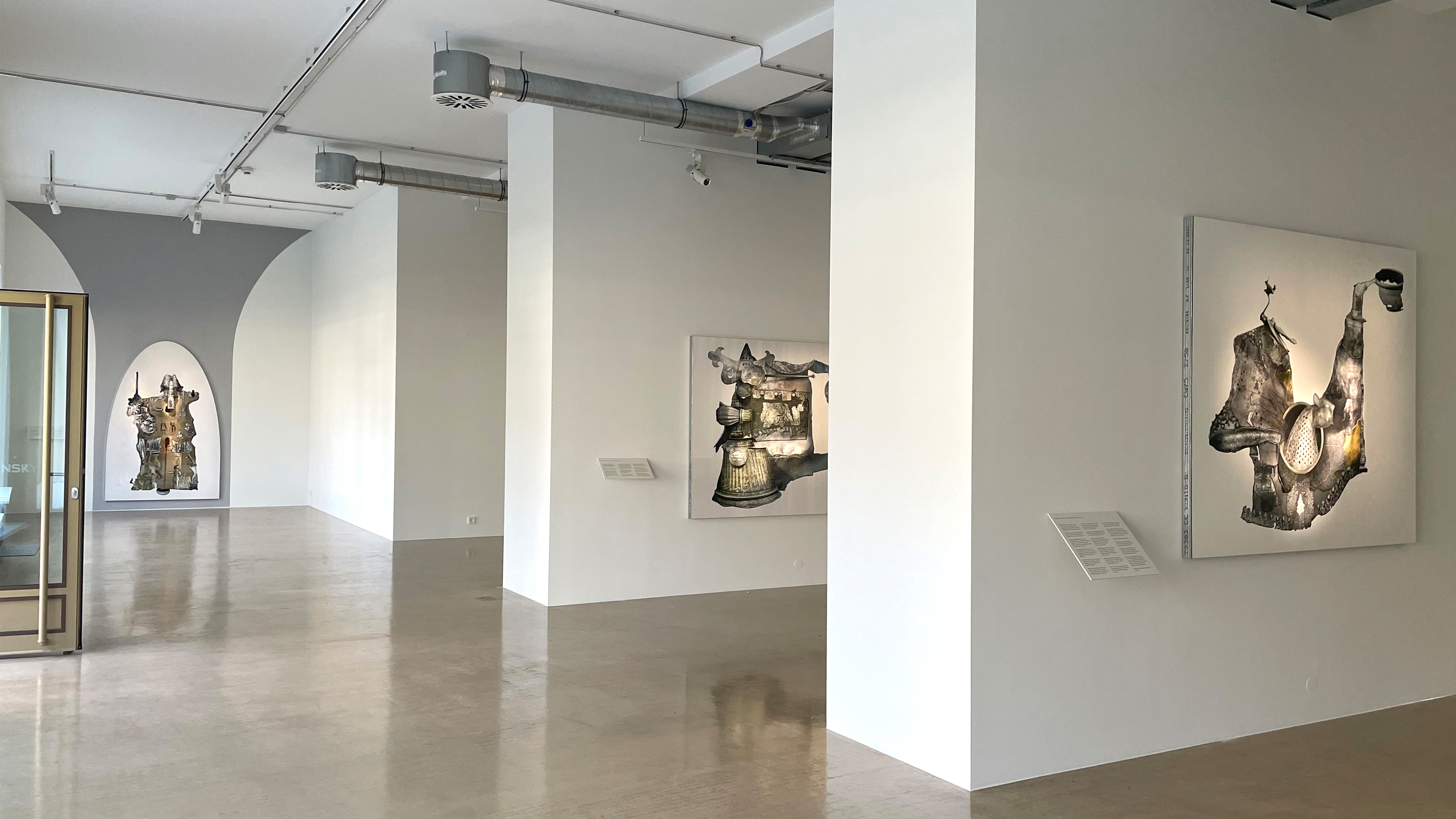 The large-scale panoramic photomontages presented in the exhibition are a symphony of fracture and healing, while the audio work fills the space with a universal language, creating a rhizomatic, research-based fiction where stories and histories merge.